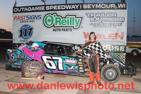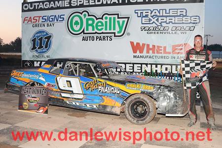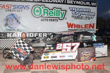 15 Nick Anvelink, 10 Paul Parker and 74 Mitch McGrath running each other hard in Seubert Calf Ranches Late Model Action.