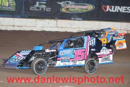 A tight battle for the lead, 25 Russ Reinwald and 08 Johnny Whitman