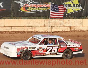 8 Tony Everard, 914 Tyler Nettkoven and 69 Nick Allard battle for position in Vetting Customs Rigs & Rides Unified Street Stock Action