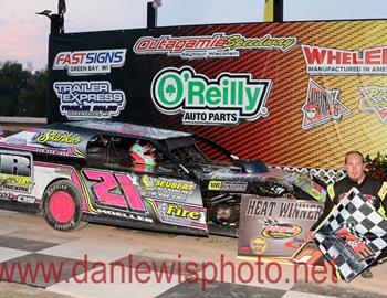 15 Nick Anvelink, 10 Paul Parker and 74 Mitch McGrath running each other hard in Seubert Calf Ranches Late Model Action.