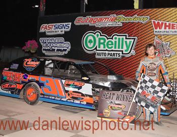 15 Nick Anvelink, 10 Paul Parker and 74 Mitch McGrath running each other hard in Seubert Calf Ranches Late Model Action.