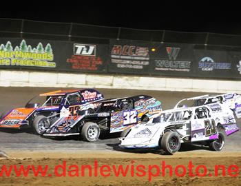 15 Nick Anvelink, 10 Paul Parker and 74 Mitch McGrath running each other hard in Seubert Calf Ranches Late Model Action.