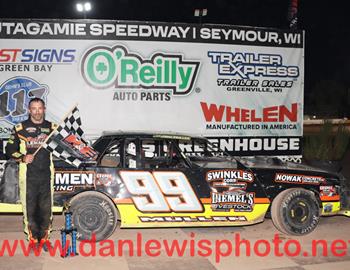 15 Nick Anvelink, 10 Paul Parker and 74 Mitch McGrath running each other hard in Seubert Calf Ranches Late Model Action.