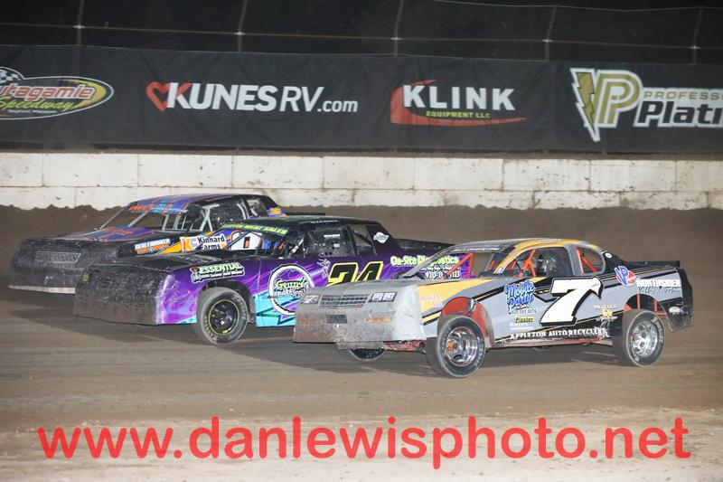 8 Tony Everard, 914 Tyler Nettkoven and 69 Nick Allard battle for position in Vetting Customs Rigs & Rides Unified Street Stock Action