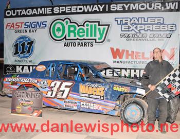 A tight battle for the lead, 25 Russ Reinwald and 08 Johnny Whitman