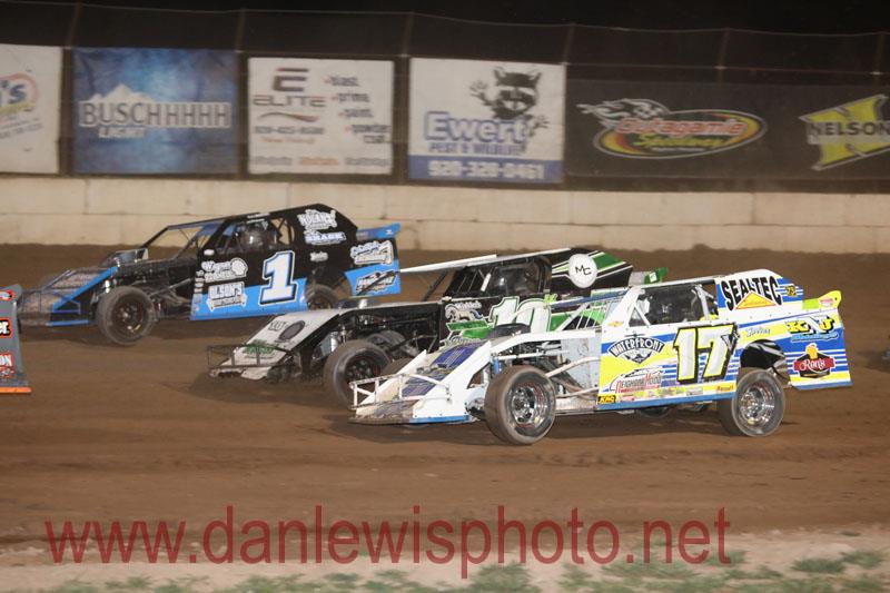 Zachary Raab went wire to wire in the IMCA Sport Mods. Raab took full advantage of his front row starting position. Pulling to a half a track lead. Not even a caution with 3 to go could stop him as he still won by half a straightaway. Derek Fehling placed a solid second, Max Oreskovich took third and state point leader Skyler Woods was fourth.